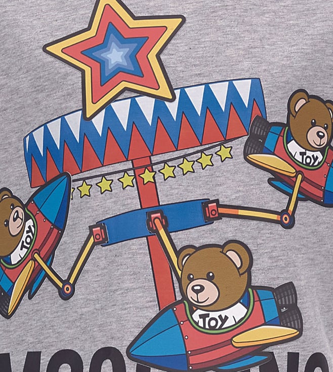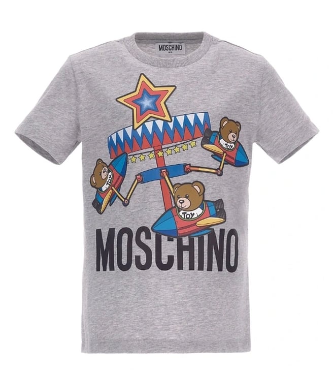 Moschino Kids Grey Teddy Bear Print Straight Fit T-Shirt