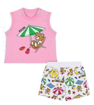 Moschino Kids Multi Teddy Bear Print Fitted Tank Top & Shorts Set
