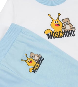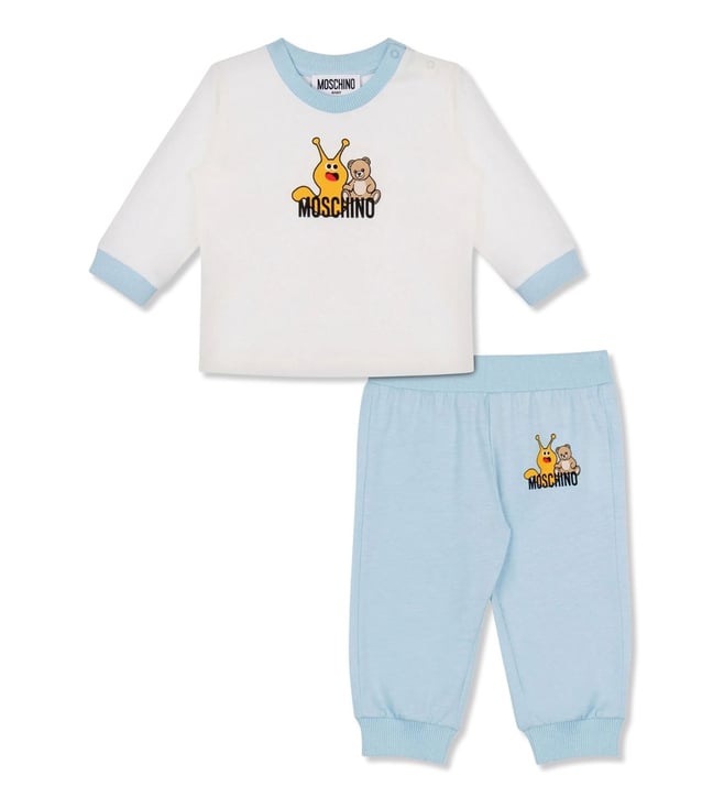 Moschino White And Blue Teddy Bear Logo Comfort Fit Clothing Set