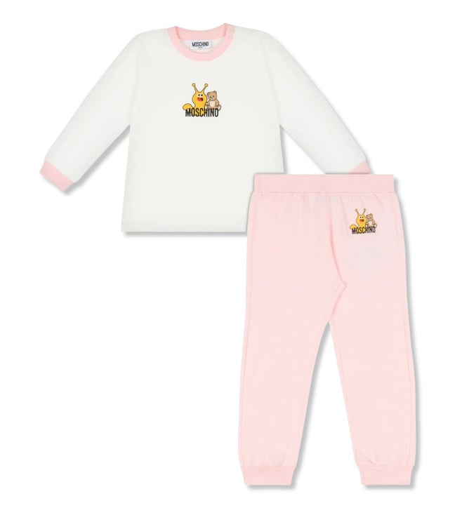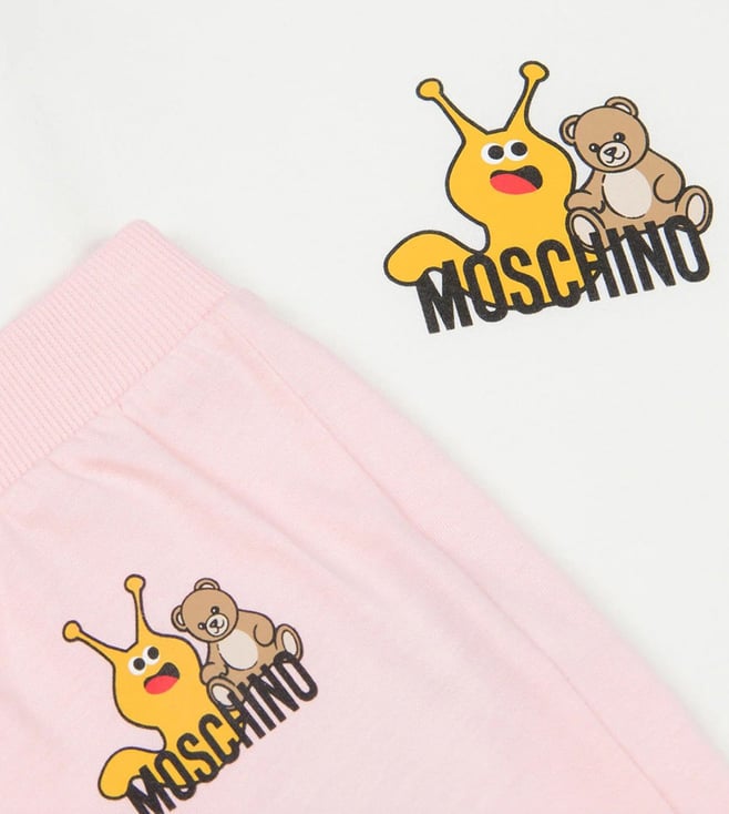 Moschino White And Pink Teddy Bear Logo Comfort Fit Clothing Set