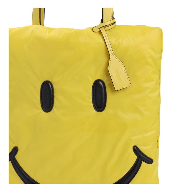 Yellow Smiley Tote, magnetic closure, 1 compartment, inside zip pocket, dual carry handles with removable adjustable crossbody strap. With its timeless design and practical features, this bag is a must-have accessory for the modern woman on-the-go.