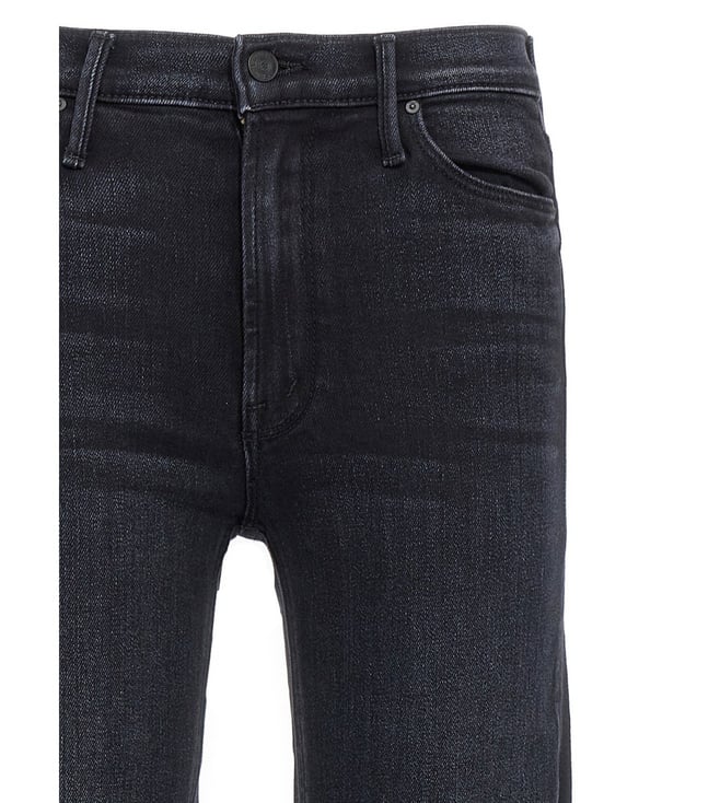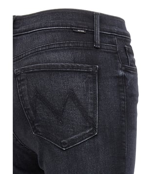 Elevate your wardrobe with the Mother Denim Black Slim Fit Jeans. Designed with the mid rise dazzler stretch cotton jeans with deep end wash, medium waist with slim leg, zip and button closure. fit true to size, these trousers combine comfort and sophistication for everyday wear.