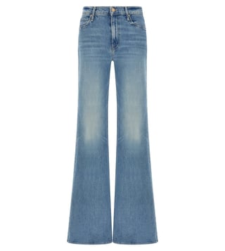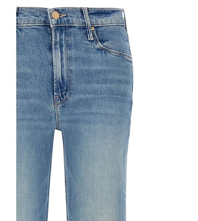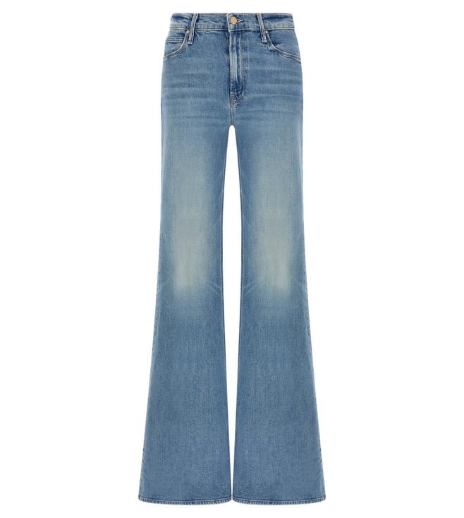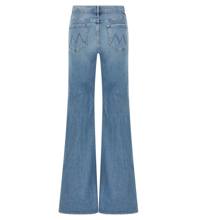 Elevate your wardrobe with the Mother Denim Light Blue Bootcut Fit Jeans. Designed with light blue, concealed fly and button fastening, belt loops, classic five pockets, mini logo tag, these trousers combine comfort and sophistication for everyday wear.