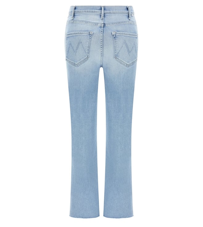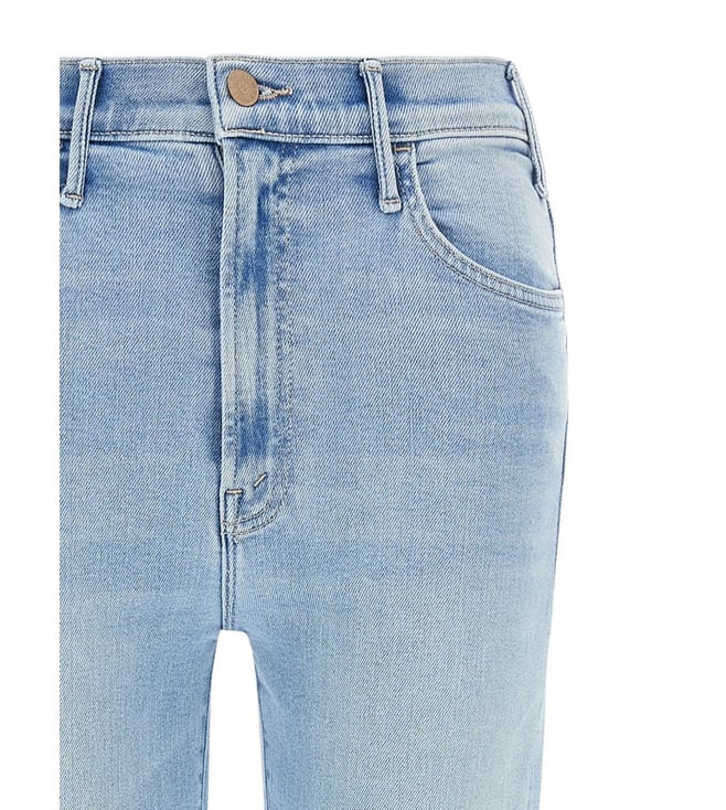 Elevate your wardrobe with the Mother Denim Light Blue Regular Fit Jeans. Designed with the hustler ankle fray denim jeans with zip and button closure, tone-on-tone logo embroidery on the back pockets and frayed leg hem. true to size fit, these trousers combine comfort and sophistication for everyday wear. Products purchased from Darveys are supported exclusively by the warranty/exchange policies of Darveys and its partner boutiques. Brand owners and their channel partners are not responsible for exchange/warranty services for items purchased through Darveys.