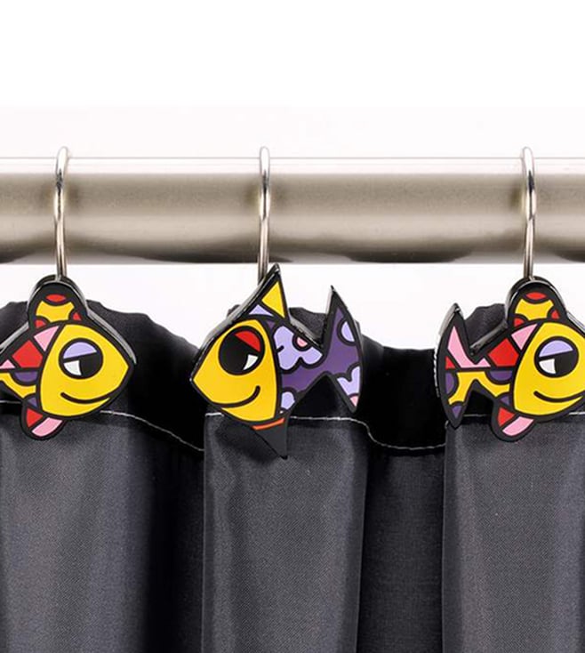 Bring a splash of vibrant artistry to your bathroom with the fish shower curtain hook set of 12 by Britto. Inspired by Romero Britto's iconic designs, these hooks feature colorful fish motifs, adding a touch of whimsy and charm to your shower space. Crafted with durable materials, they securely hold your shower curtain in place while infusing your bathroom with a delightful and lively ambiance.