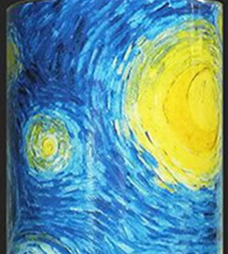 Give your space an artful glow with this certified museum art vase. The painting shows the night sky as seen from Van Gogh's room in the lunatic asylum in Saint-Remy-de-Provence, where he was admitted voluntarily for a year shortly before his death. The asylum was located in a spacious, old monastery where there was also space for a studio. It was here that Van Gogh created many sketches and paintings, of which The Starry Night has become, retrospectively, one of the most iconic works of art history.