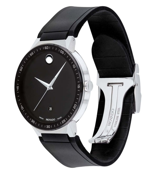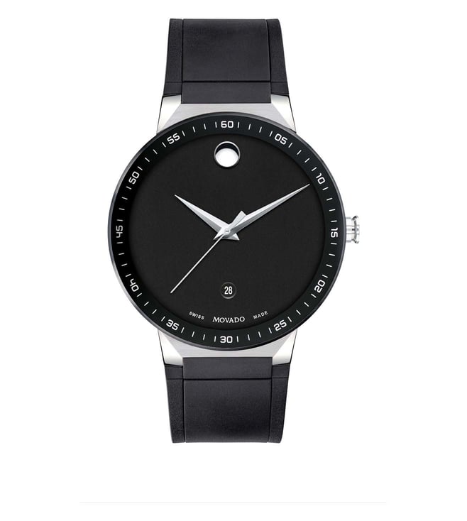 A must-have timepiece for all the watch aficionados, this men's analog watch from the Sapphire collection by Movado will be a perfect pick. Housed in a 41 mm case, the round dial is protected by a sapphire glass. It showcases plain three hands and a crown for time adjustment. The strap is crafted with care using rubber that gives a good finish.
