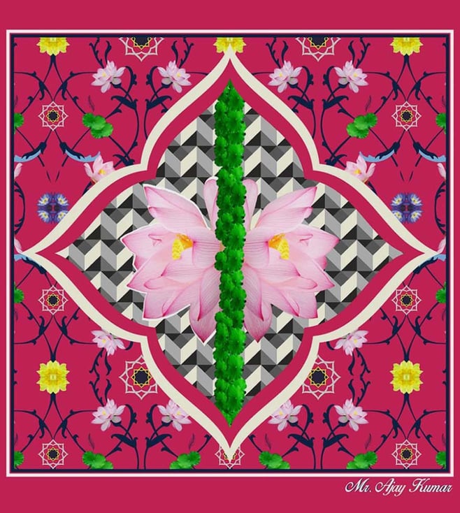 This Mr Ajay Kumar pink printed cotton pocket square with floro-geometric print illuminates the graphic similar to a thousand-petaled lotus mandala creating a sense of oneness. Created from the lotus sutra theme, it features the vibrant komol patoj print with finished edges. Disclaimer: Product colour may slightly vary due to photographic lighting sources. Country Of Origin - India.