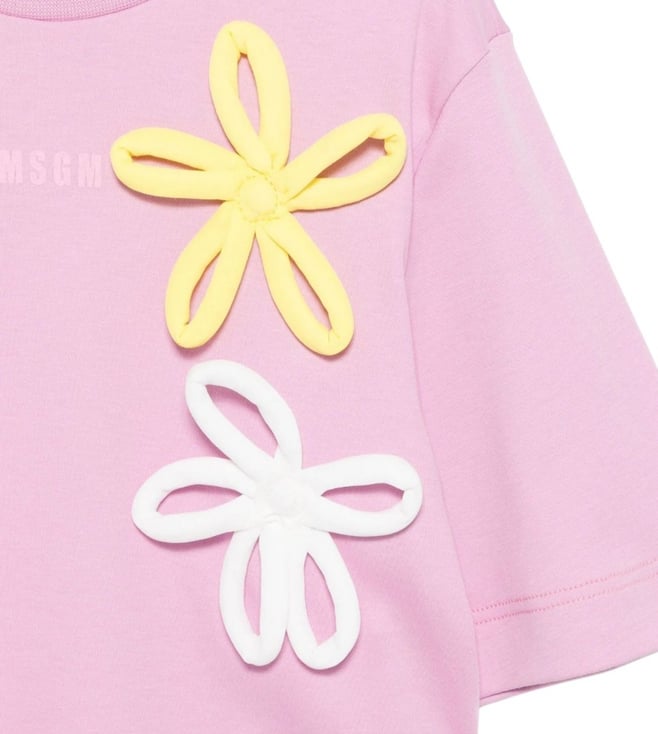 MSGM Kids Girls Pink Flower Embroidery Fitted T-Shirt