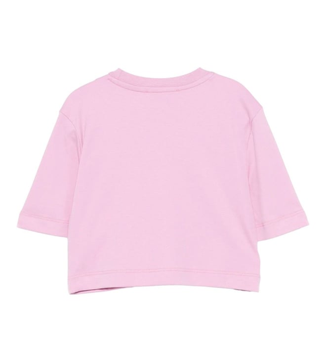 Elevate your little fashionistas wardrobe with our MSGM Kids Girls Pink Embroidery Fitted T-Shirt. This chic and trendy tee features delicate embroidery details that add a touch of charm to any outfit. The Fitted ensures a flattering silhouette, while the soft, high-quality fabric guarantees all-day comfort. Perfect for any occasion, this versatile tee will quickly become a favourite go-to piece in her closet. Upgrade her style effortlessly with this must-have shirt