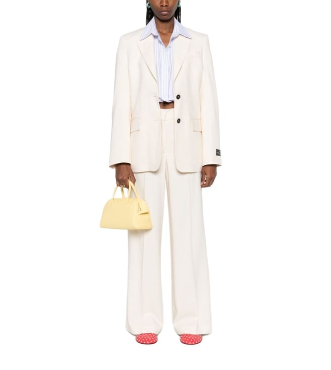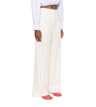 Elevate your wardrobe with the MSGM Off White Loose Fit Trousers. Designed with white, concealed front button, hook and zip fastening, two side slash pockets, two rear welt pockets, belt loops, these trousers combine comfort and sophistication for everyday wear. Products purchased from Darveys are supported exclusively by the warranty/exchange policies of Darveys and its partner boutiques. Brand owners and their channel partners are not responsible for exchange/warranty services for items purchased through Darveys.