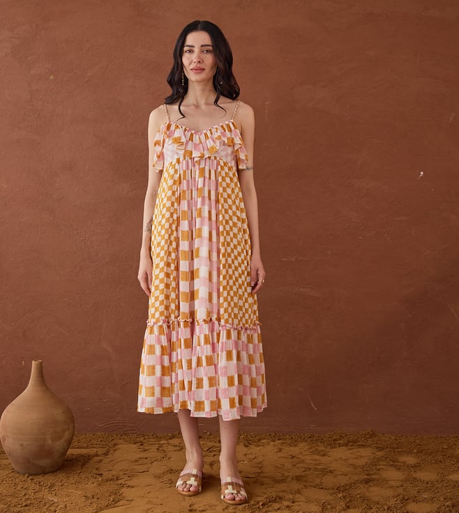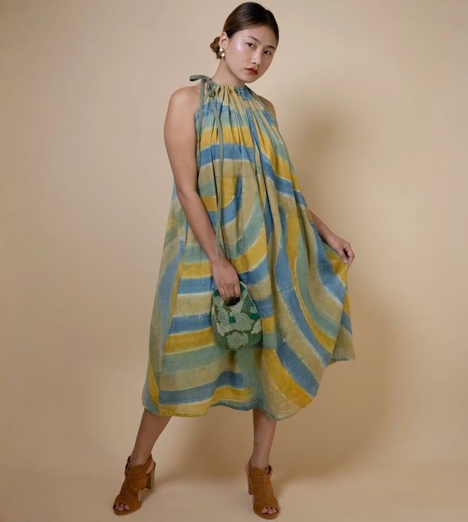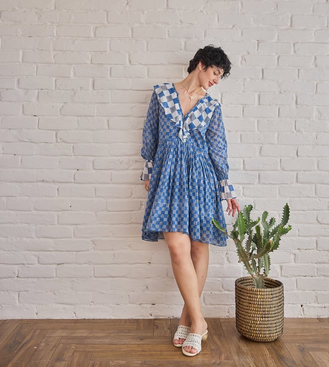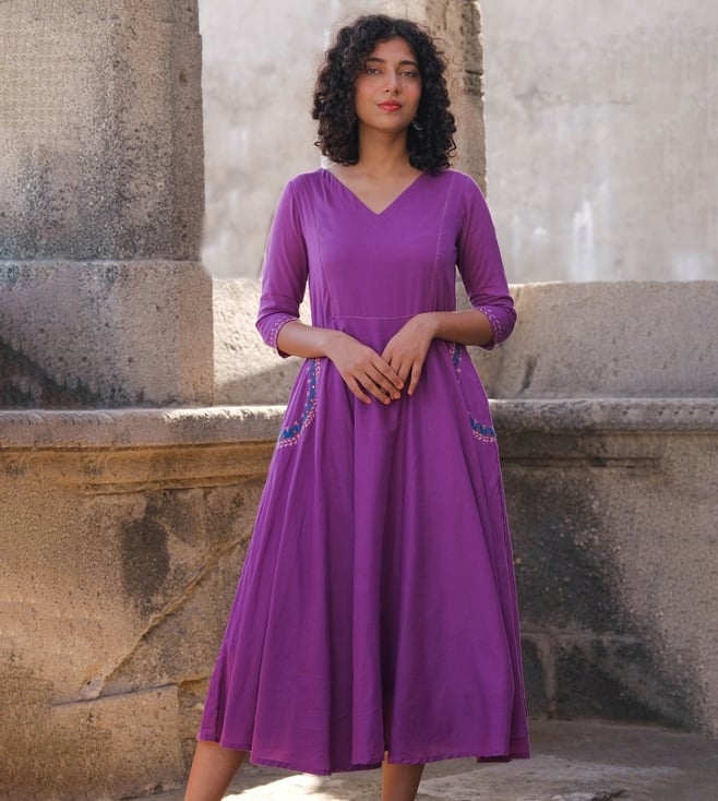 Purple Threads of Times Magical Amethyst Hand Embroidered Pure Cotton Mulmul Flared Dress