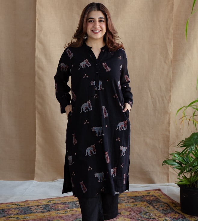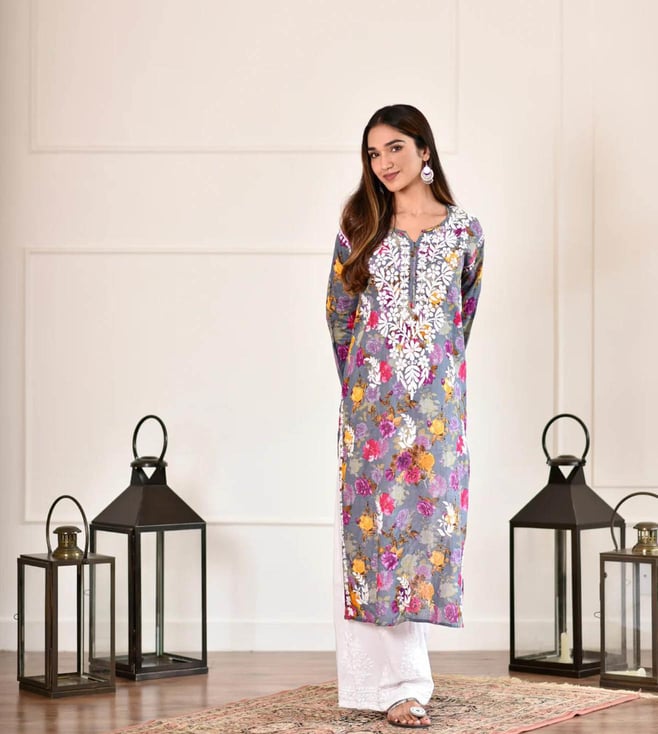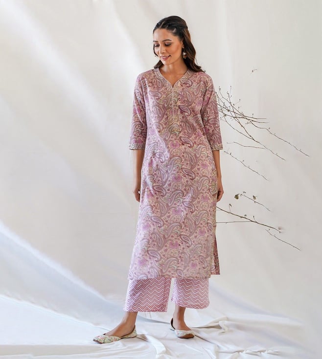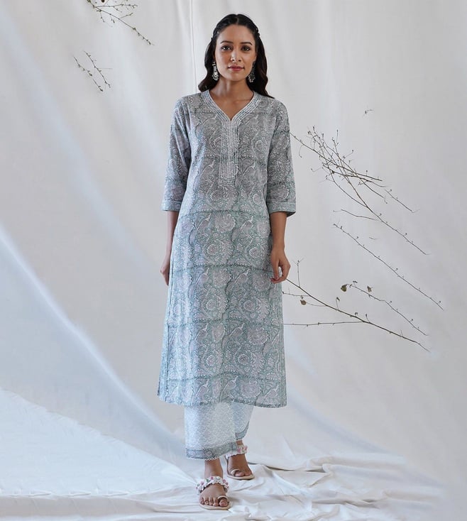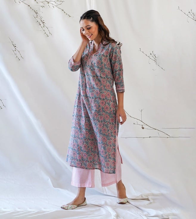 Gulkari Mulmul Handblock Kurta- Grey & Pink