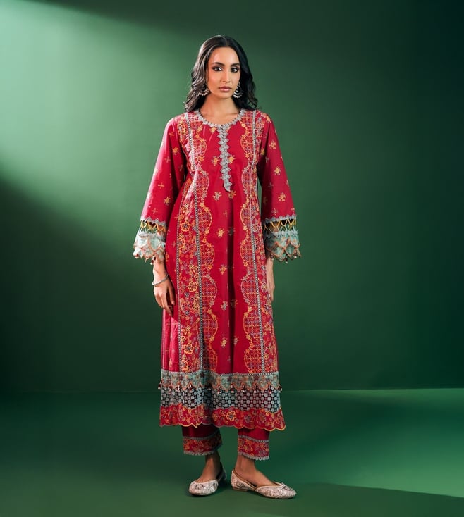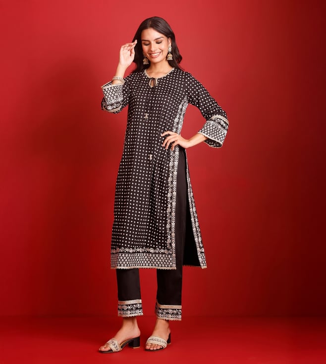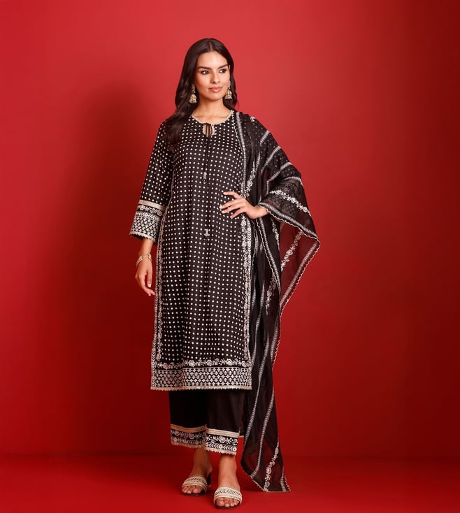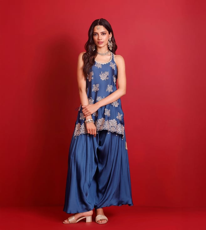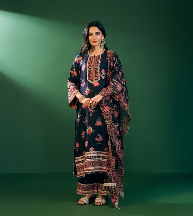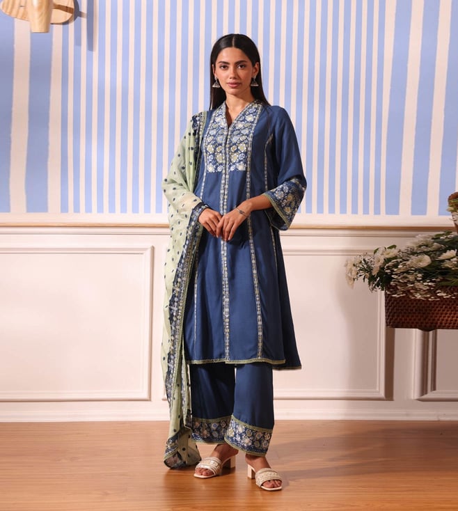 Navy Siti Embroidered Regular Fit Kurta Pant & Dupatta Set