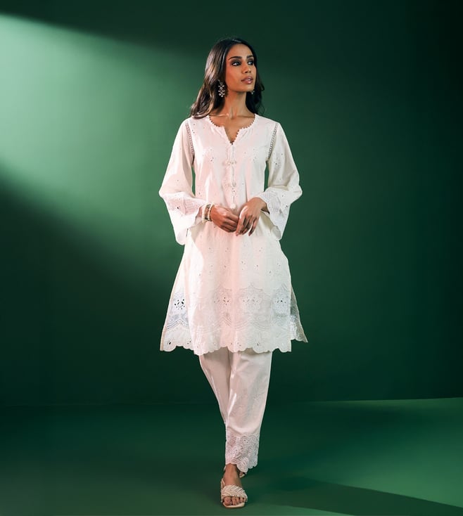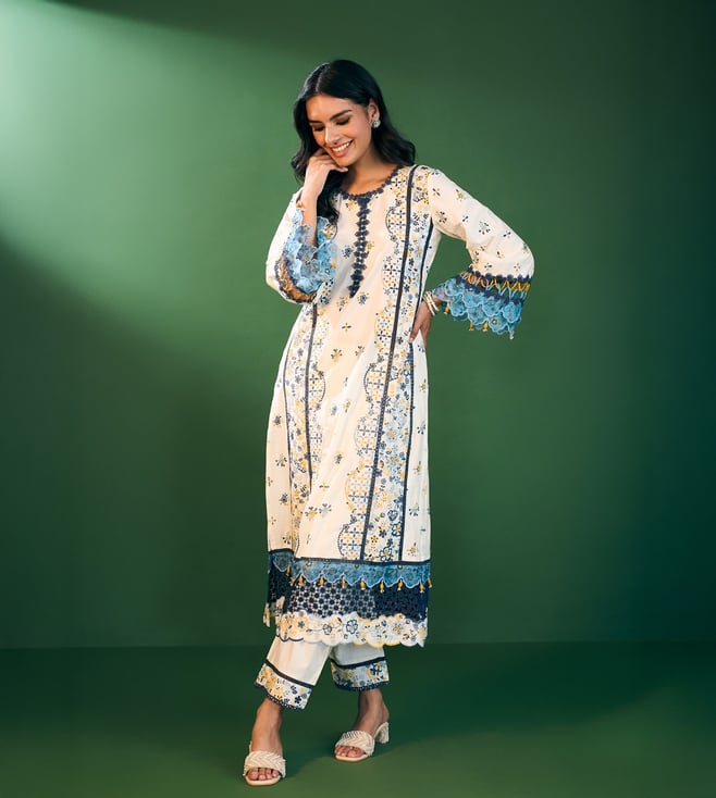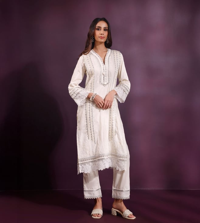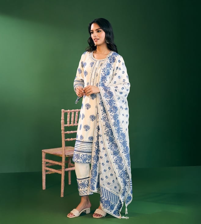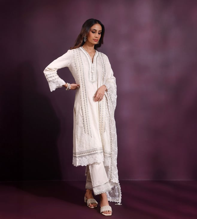 Off White Supima Cotton Kurta with Pant & Dupatta