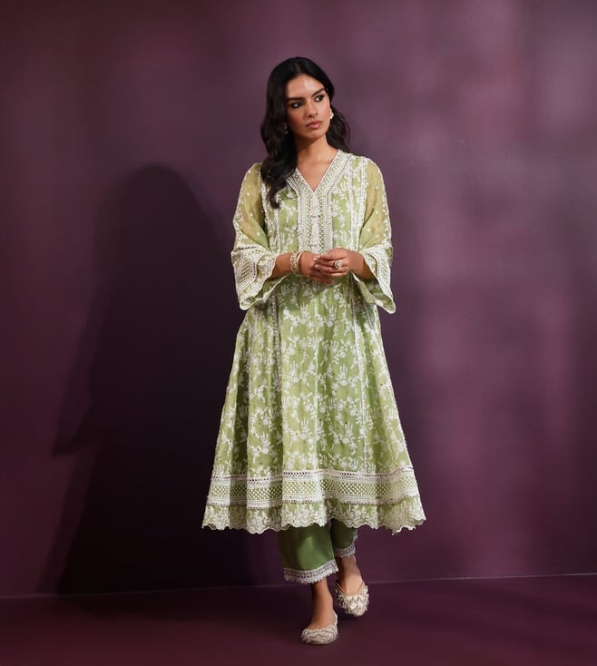 Pista Green Tencel Luxe Organza Kurta with Pant