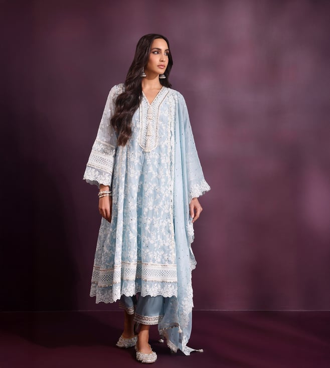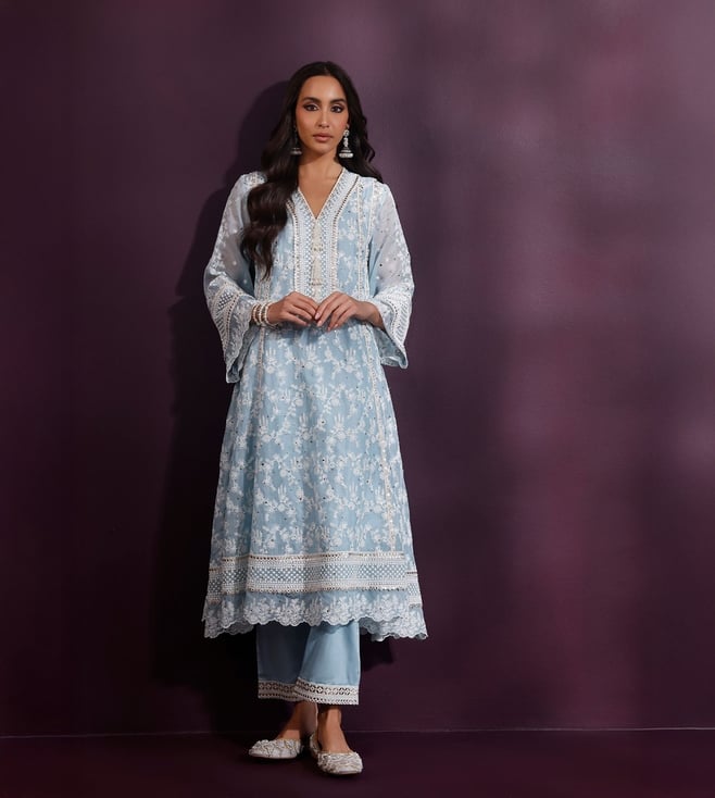 Blue Tencel Luxe Organza Kurta with Pant & Dupatta
