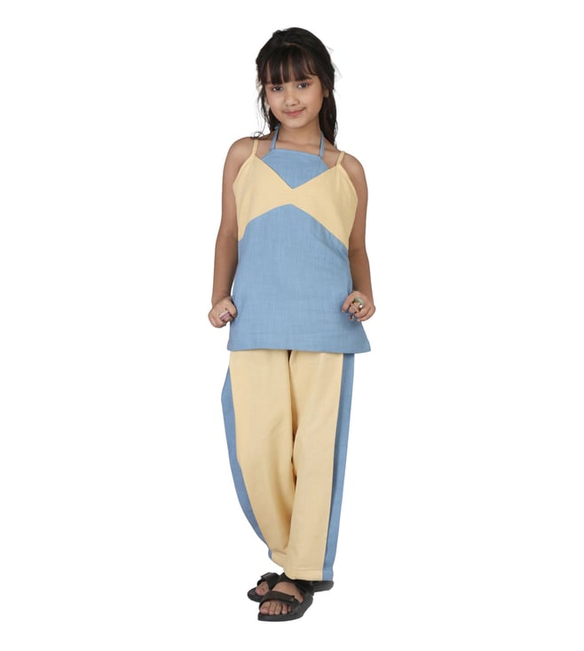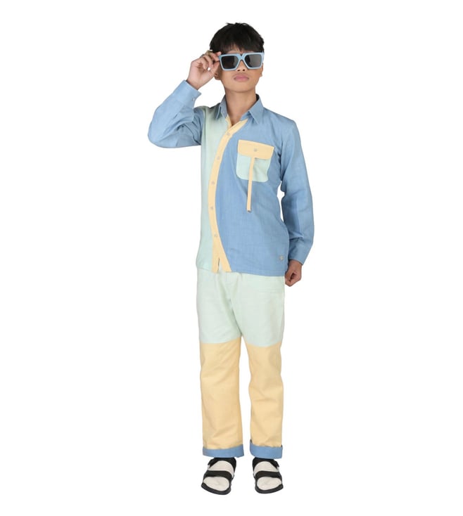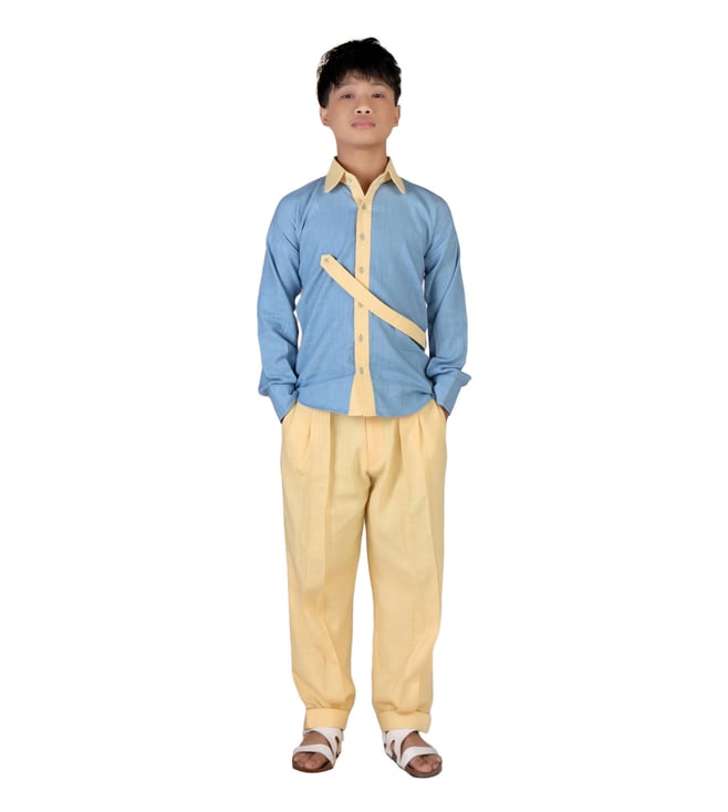 Blue & Yellow ORIGAWOW Larch Shirt with Pant Co-Ord Set
