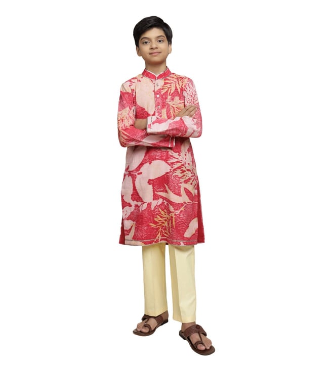 Crimson Red & Sunny Yellow ANTARAMBH Zalea Long Kurta with Straight Pants