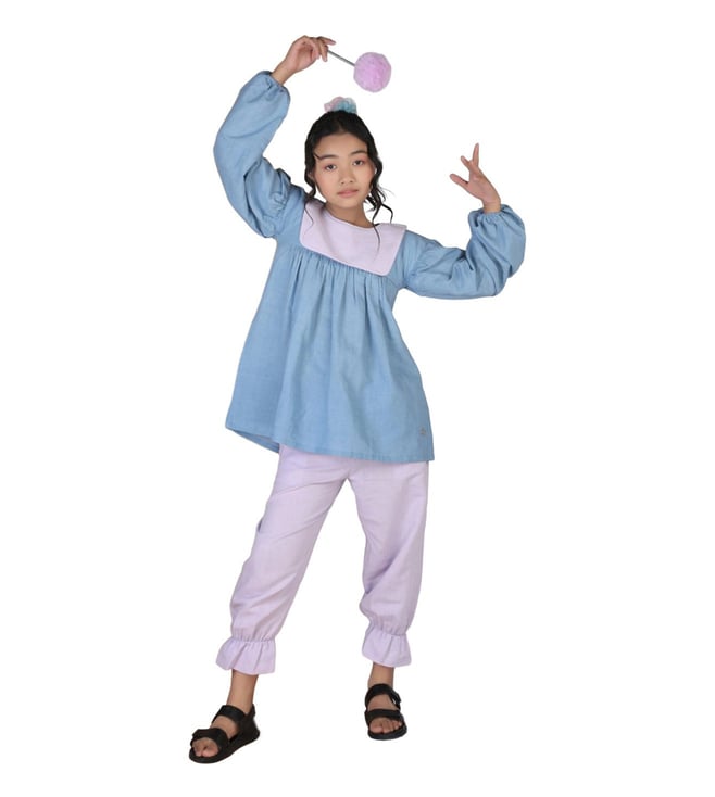 Blue & Pink ORIGAWOW Periwinkle Top with Pant Co-Ord Set