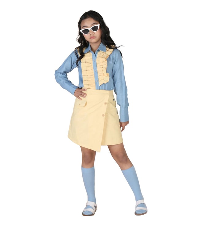 Blue & Yellow ORIGAWOW Aster Ruffle Shirt with Skirt