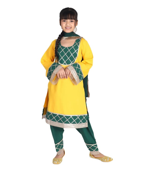 Crimson Red, Mustard Yellow & Bottle Green ANTARAMBH Luri Short Kurti and Salwar and Dupatta