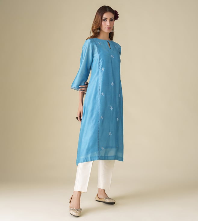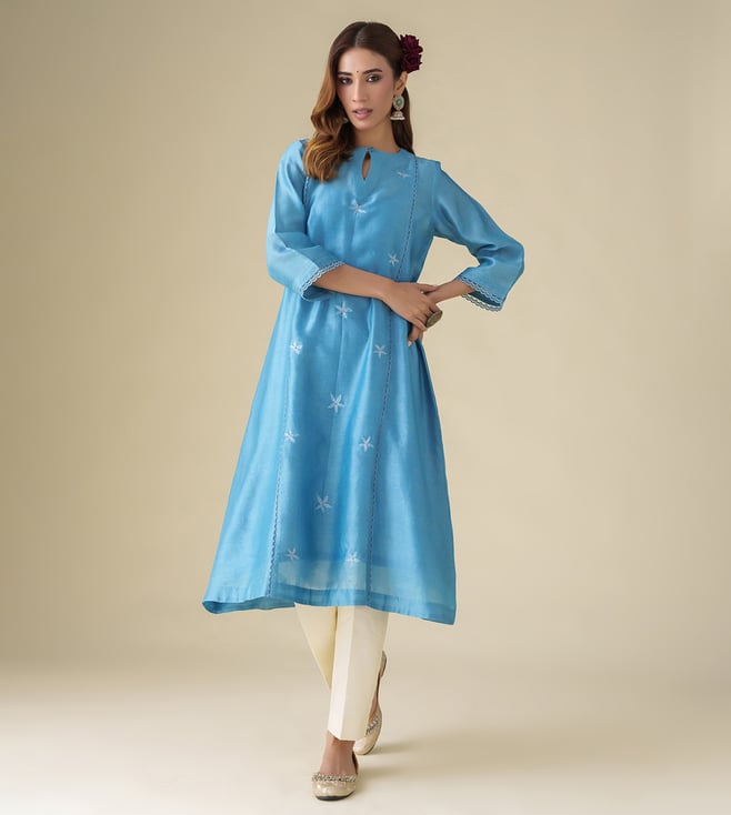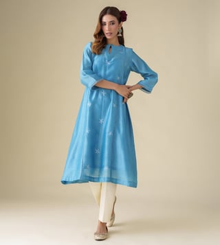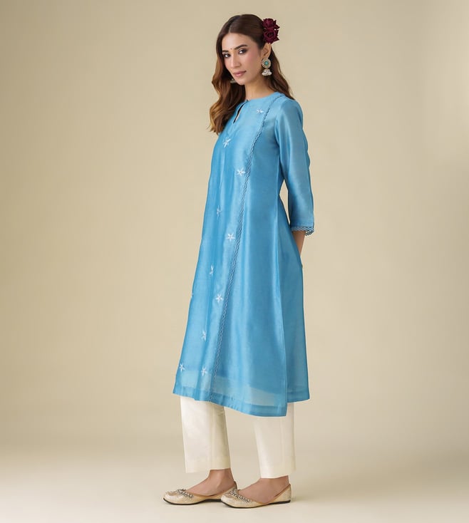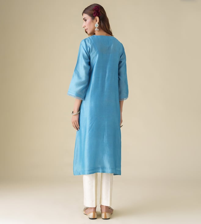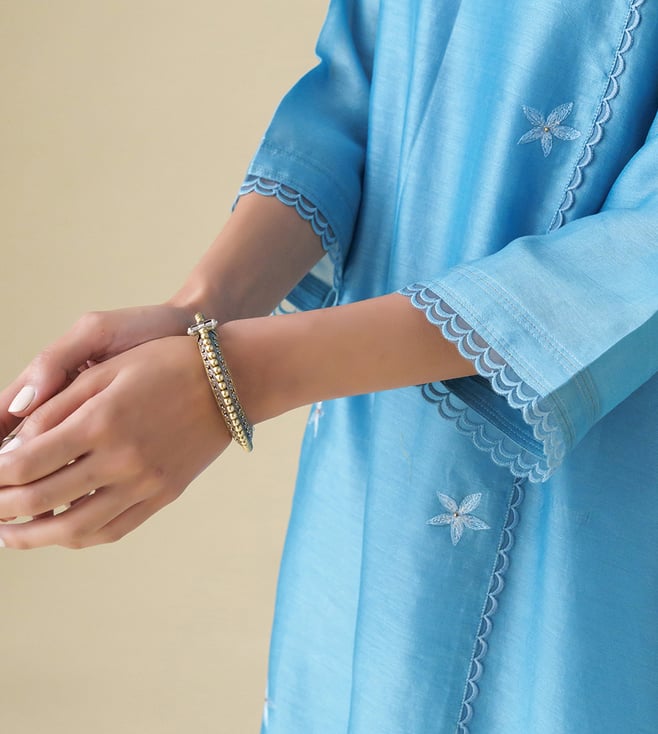 Mushio Blue Sunehri Dori Embroidered Chanderi Silk Kurta (with Slip) With Pants And Dupatta