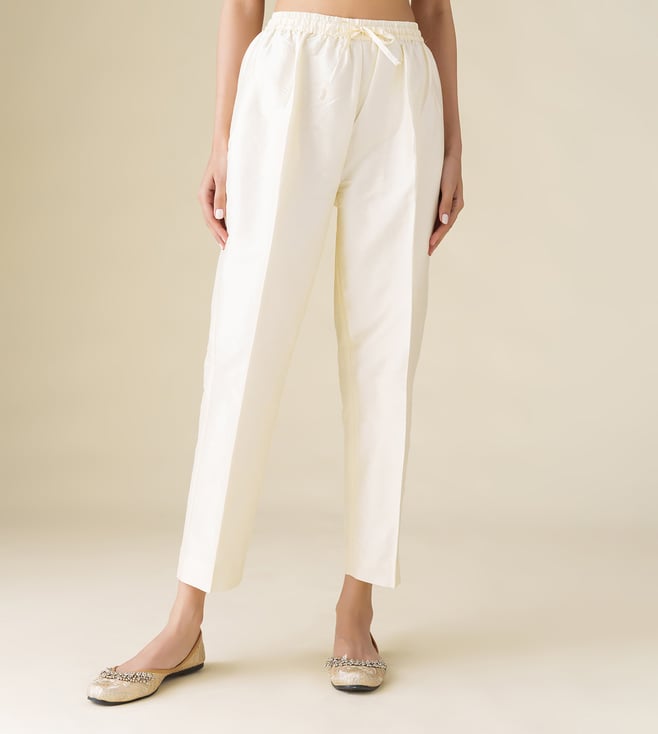 This kurta set from the Sunehri collection is perfect for the summer weather. It features beautiful floral embroidery and a keyhole neck with a potli button detail. The front panel and sleeves also have scallop lace, giving it a unique touch. The kurta comes with a slip. The set contains a kurta with slip, pants and dupatta. The kurta is made of chanderi, the pants are made of cotton silk and the dupatta is made of organza. Disclaimer: Product colour may slightly vary due to photographic lighting sources. Country of Origin - India.