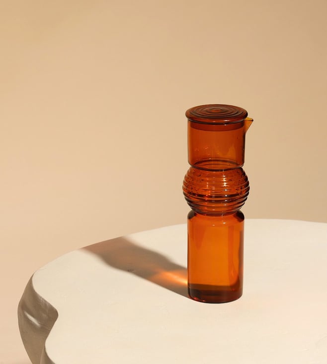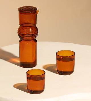 Expertly made from non-toxic glass, the set preserves the pure flavors of your beverages while offering safe, reliable use. The captivating coil-shaped texture creates playful reflections that catch the eye and elevate your table setting. Thoughtfully offered as a carafe, glasses, or a complete set, giving flexibility for your pouring and presentation needs. The glasses, at 275 ml each, are perfectly sized for generous servings¿whether you're hosting or indulging. Hand-blown in Firozabad, India, showcasing skilled craftsmanship and timeless artistry.