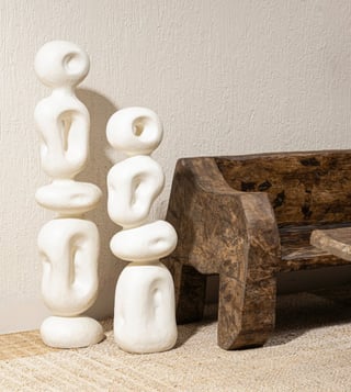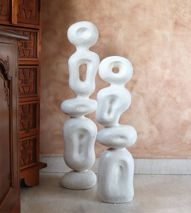 The Ren sculptures are a testament to the artistic brilliance of Divyendu Anand. These exquisite works of art effortlessly steal the spotlight in any home. Their fluid forms, intricate textures, and boundless character promise to introduce an unparalleled sense of uniqueness to your living space. Fibreglass composition makes it outdoor-friendly, Highly durable and has excellent heat endurance. Available in two sizes and two colours. Also comes in a set of two for added impact. These items are hand-painted, and their textured imperfections are an intentional part of their beauty.