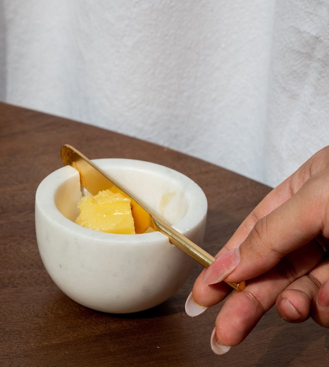 White Marble Butter dish with Metal Knife