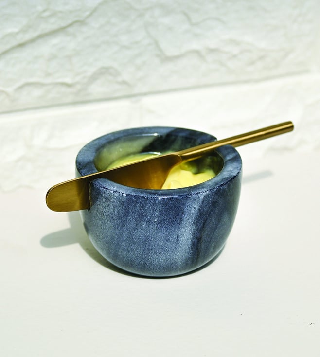 Grey Marble Butter dish with Metal Knife