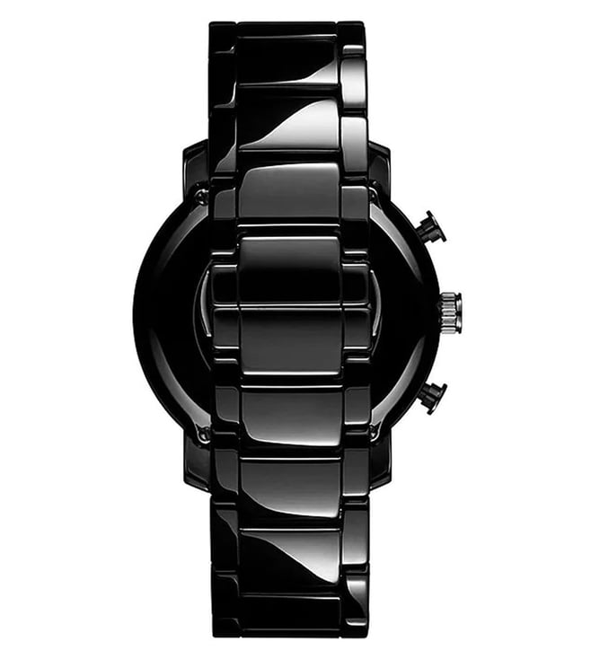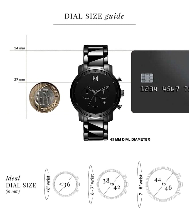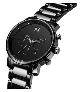 This mvmt chronograph watch has a ceramic case 45 mm in diameter and is fitted with a ceramic bracelet. Inside the case lies a movement and the watch features a mineral crystal. The watch comprises 30 m water resistance. This means the watch is splash waterproof.