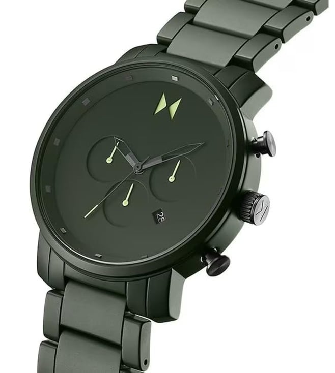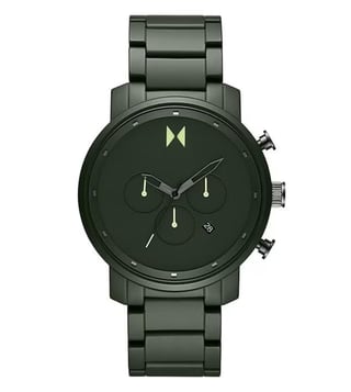 Inspired by iconic tactical gear and the wilds they've explored, the Chrono Ceramic in Matte Green Camo sports a finish so rich, it could only be achieved by meticulously diamond-blasting this highly technical ceramic material. Keep time with a custom camo dial design that's made up of deconstructed MVMT logo fragments, and featuring a serialized gold backplate. Only 500 made.