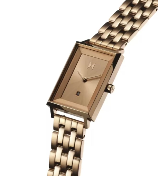 Amaze everyone around you by wearing this women's analog watch from the collection by MVMT. The rose gold rectangular dial is protected by a scratch resistant glass. It features a crown for time adjustwoment. The stainless steel strap comes in a rose gold hue that further elevates the look of the timekeeper. Besides, it is completed with a clasp to ensure a secure fit on the wrist.