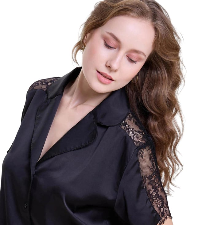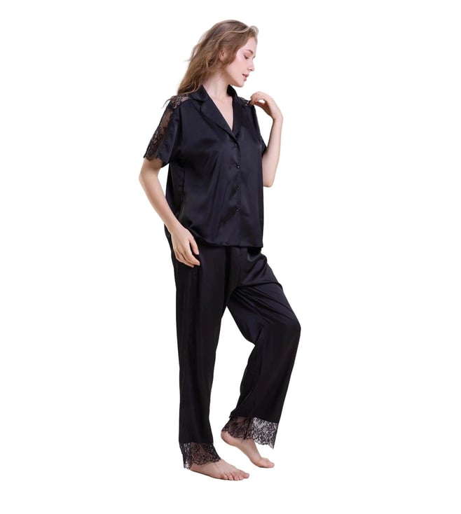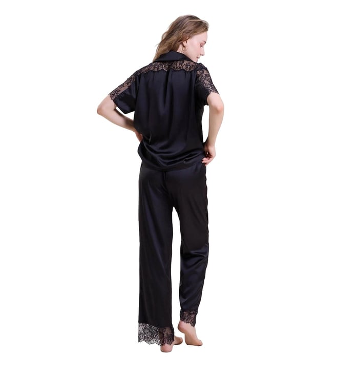 Mysthelle Black Eyelash Lace Nightwear Pyjama Sets