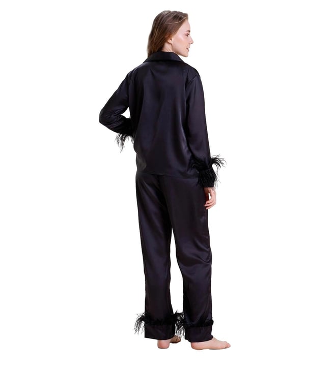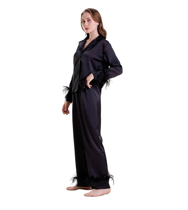 Mysthelle Black Nightwear Pyjama Set with Feather Trim