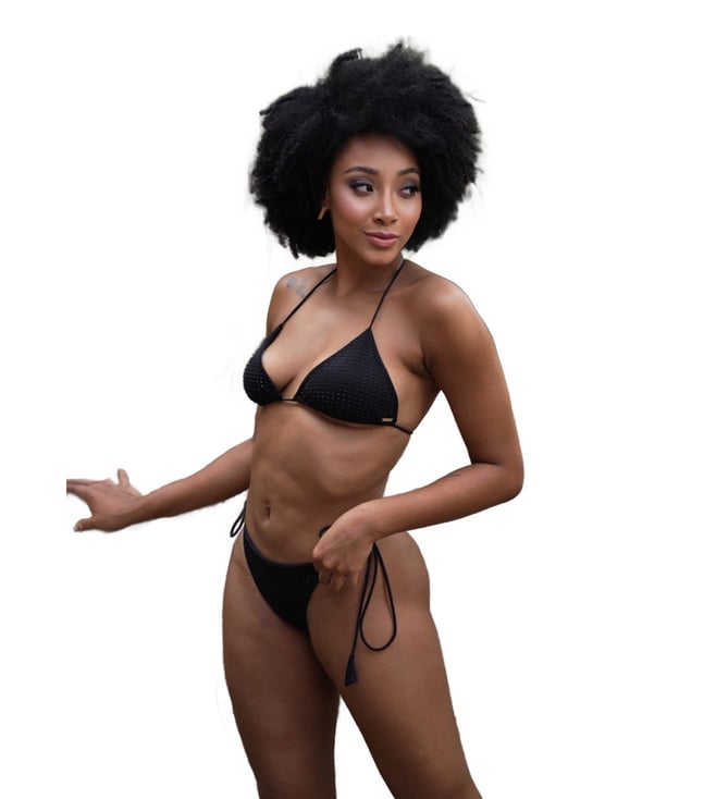 Mysthelle Black Rhinestone Embellished Regular Fit Bikini Set