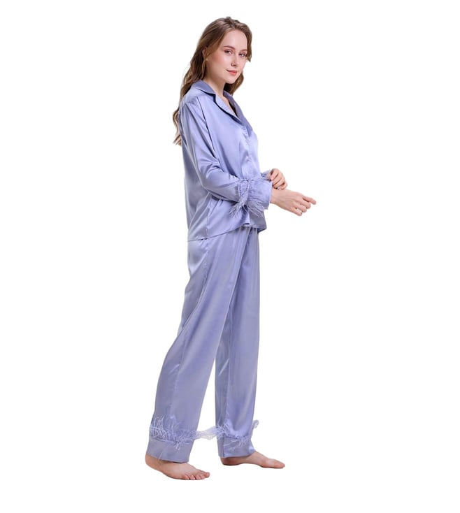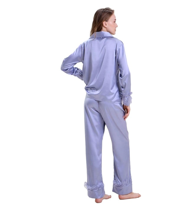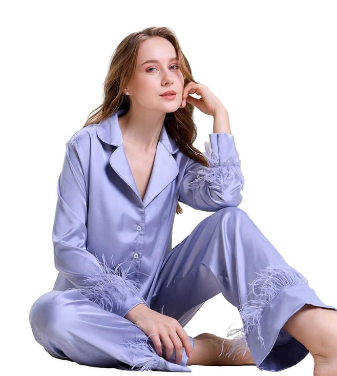 Mysthelle Blue Tiffany Nightwear Pyjama Set with Feather Trim