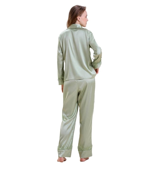 Mysthelle Green Nightwear Pyjama Set with Feather Trim