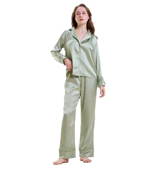 Indulge in luxurious comfort and style with our Mysthelle green nightwear pyjama set. Crafted from soft, breathable fabric, this set is perfect for a restful night's sleep or lazy lounging around the house. The elegant green color and delicate lace detailing add a touch of sophistication to your bedtime routine. With a relaxed fit and adjustable straps, this set offers the perfect combination of comfort and style. Elevate your sleepwear collection with the Mysthelle green nightwear pyjama set and experience ultimate relaxation in chic fashion.
