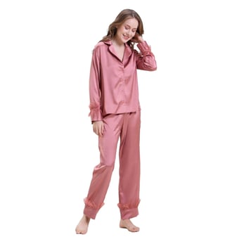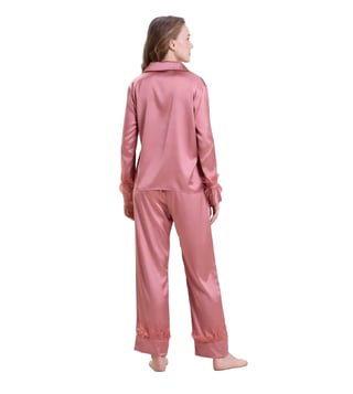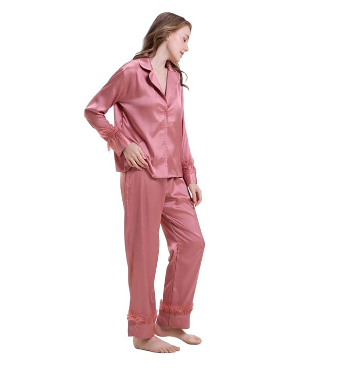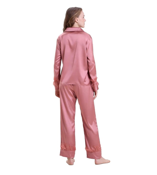 Mysthelle Pink Nightwear Pyjama Set with Feather Trim