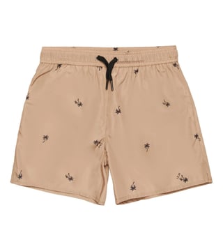 N21 Boys Beige Logo Printed Comfort Fit Swim Shortss