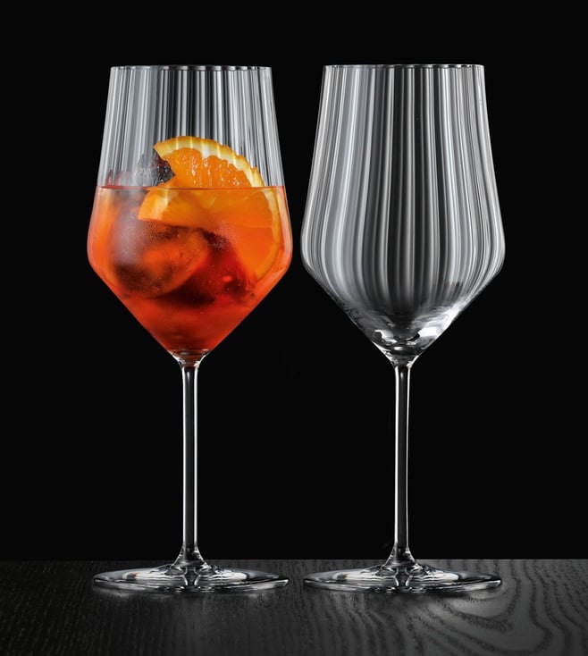 This aperitivo spritz glass from Nachtmann is ideal for everything from rose to aperol. These casually cool glasses are in their element between the end of the working day and dinner. These glasses are a must-have for anyone who wants to give their home bar a new shine. The gentle grooves in the glass create beautiful reflections, playing with the light to enhance the vibrancy of your drink. The range is complemented by a matching bowl, perfect for serving small side dishes and snacks.