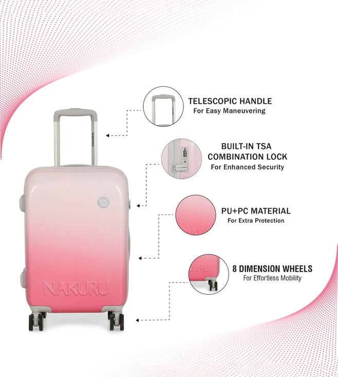 The brand nakuru was born vivid colors. Nakuru also means 'paradise' that all travelers are looking for for the rest of their lives. The nakuru az-2251 zipper 20 inches hard pink luggage must be the next addition to your luggage collection. An eye-catching innovative finishing sets the tone for every trip you take. Sitting pretty on 4 multi-directionalspinners. Choose the one that reflects your personality. Strolling has been made much easier.