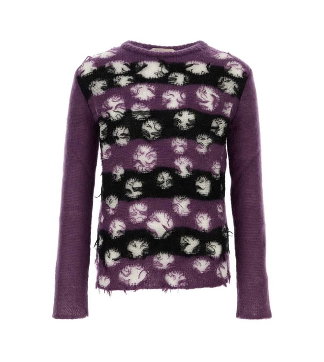 Elevate your style with the Namacheko Purple Striped Sweater. Intentional rips at the front and striped embroidery at the back. Ribbed crewneck. Products purchased from Darveys are supported exclusively by the warranty/exchange policies of Darveys and its partner boutiques. Brand owners and their channel partners are not responsible for exchange/warranty services for items purchased through Darveys.