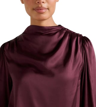 Elevate your wardrobe with the Nancy Drape Neck Button Blouse from Forever New. Featuring a relaxed silhouette, high neckline, and gathered detailing, this blouse is both comfortable and stylish. Made from soft woven fabric with a smooth finish, this top is perfect for all-day wear. With a minimum of 50 percent LENZING ECOVERO viscose fiber, sourced sustainably, this blouse is not only fashionable but also eco-friendly. Update your look with this versatile piece that transitions effortlessly from day to night.
