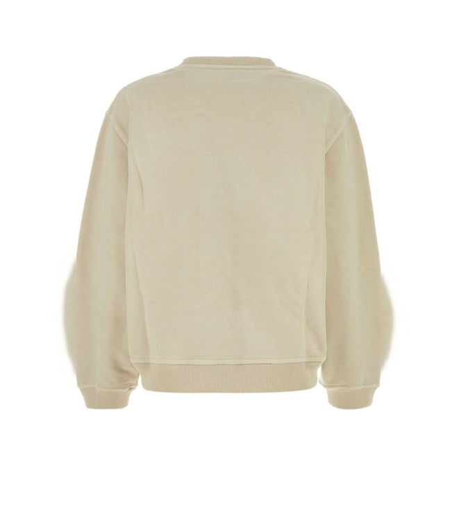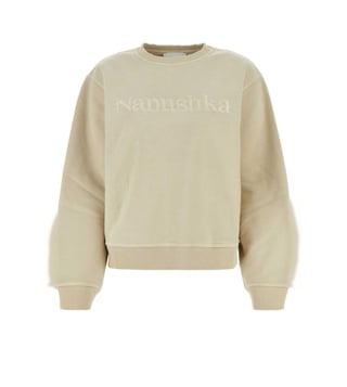 The Nanushka Beige Graphic Sweatshirt is a harmonious blend of comfort and artistry, enveloping you in a soft, earthy hue reminiscent of sunlit sands. Its minimalist design is punctuated by an abstract graphic, a subtle nod to modern expressionism, inviting curiosity and conversation. Crafted from premium materials, it offers a cozy embrace, perfect for both introspective mornings and vibrant city strolls. This sweatshirt is not just a garment, but a canvas of style and sophistication.