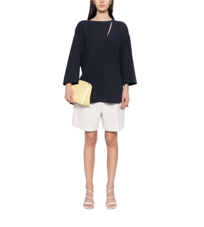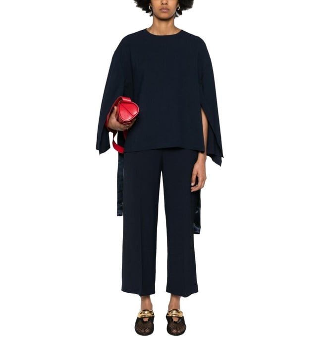 Navy Blue Cady Texture Blouse