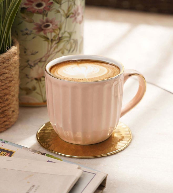 Pink Ceramic Ribbed Coffee Cups (0.23 L) - Set of 2